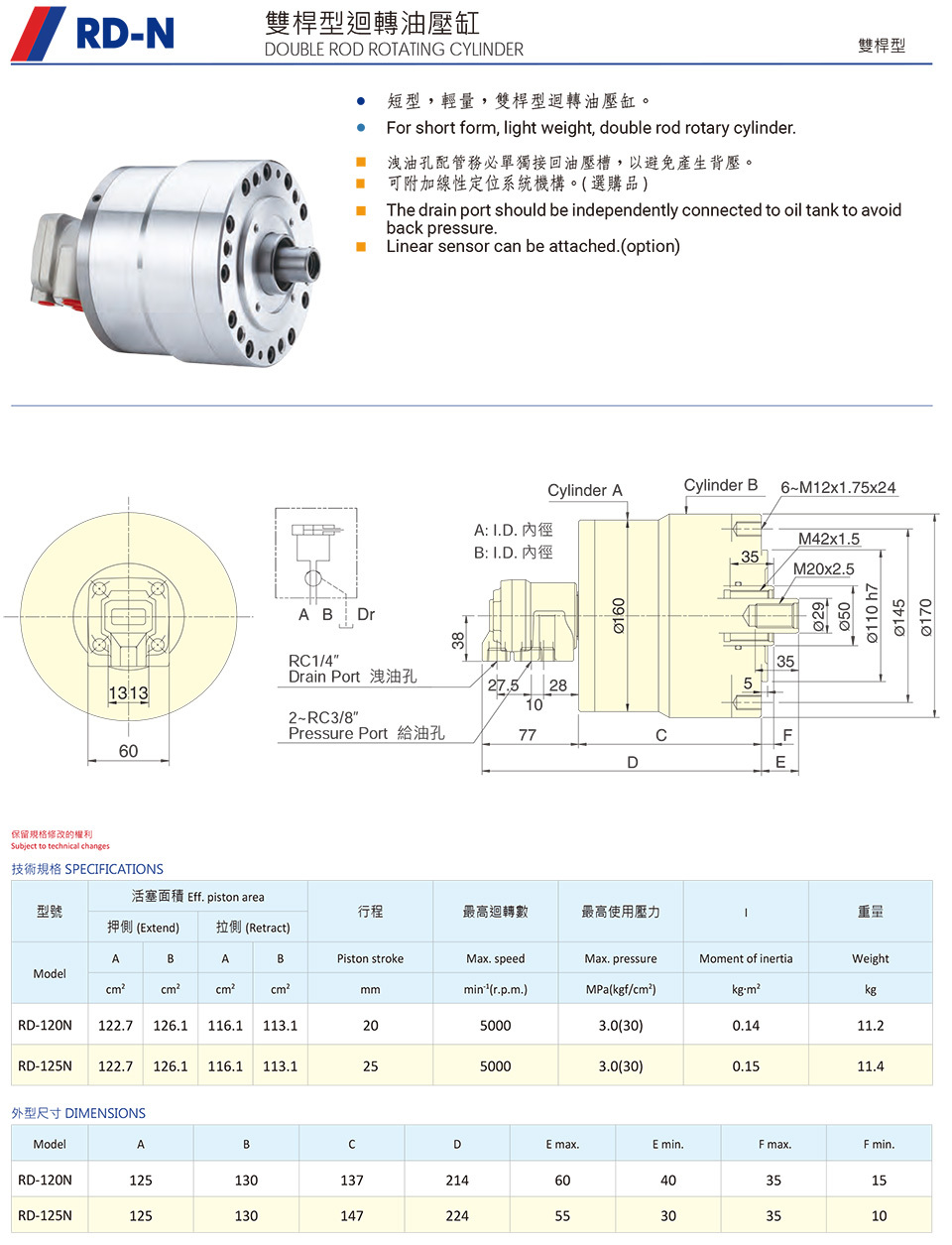 RD-N 雙桿型迥轉(zhuǎn)油壓缸